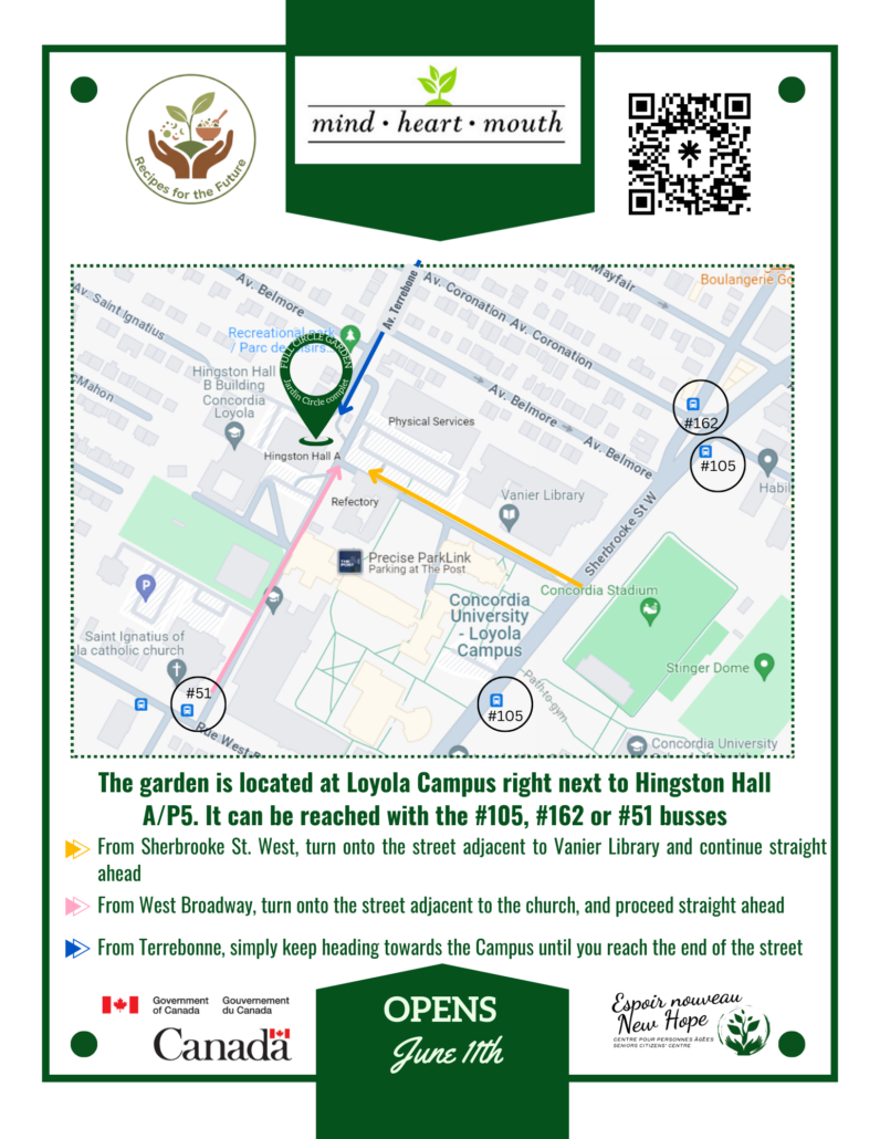 In partnership with the New Hope Senior Citizens’ Centre and as part of the Recipes for the Future initiative funded by the Government of Canada, the mind.heart.mouth garden is an intergenerational space that supports community connection and fresh food for Meals on Wheels. Volunteers aged 50+ commit to one morning shift per week.